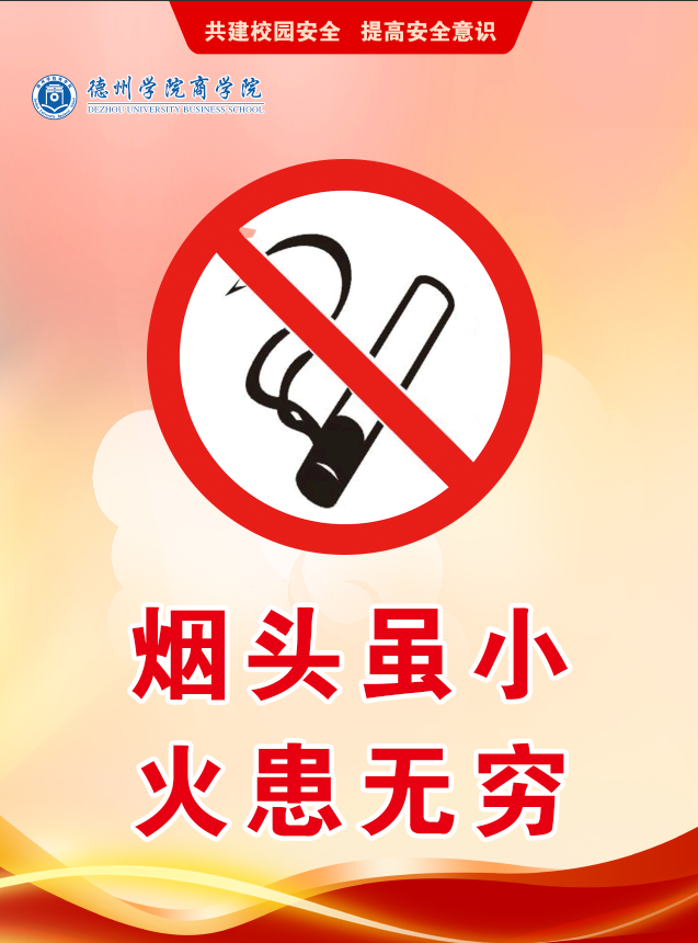 学院围绕“严守禁烟规定,深学违纪条例”要求,全面加强纪律规范教育。宣传教育方面,在教学楼、宿舍区、食堂等20余处点位循环展示无烟主题展板,通过官方公众号同步推送“无烟校园,你我共建”主题内容,系统解读吸烟危害、禁烟区域及处分条款,形成线上线下宣传合力。制度学习方面,各班级集中组织学习《德州学院学生违纪处分条例(修订)》,重点解读公共场所禁烟规定及违规后果,引导学生增强纪律意识,筑牢行为底线,共同维护安全、文明、健康的校园环境。