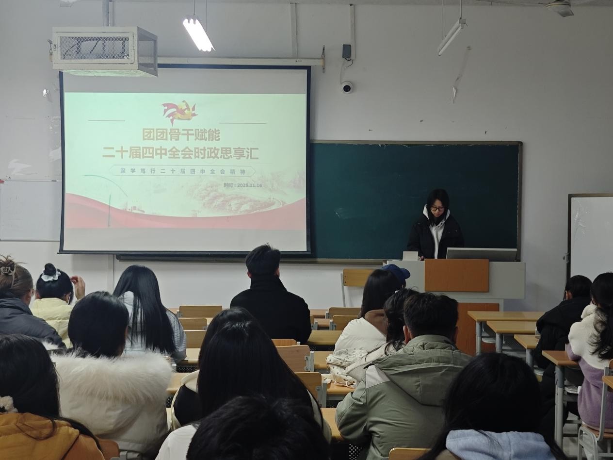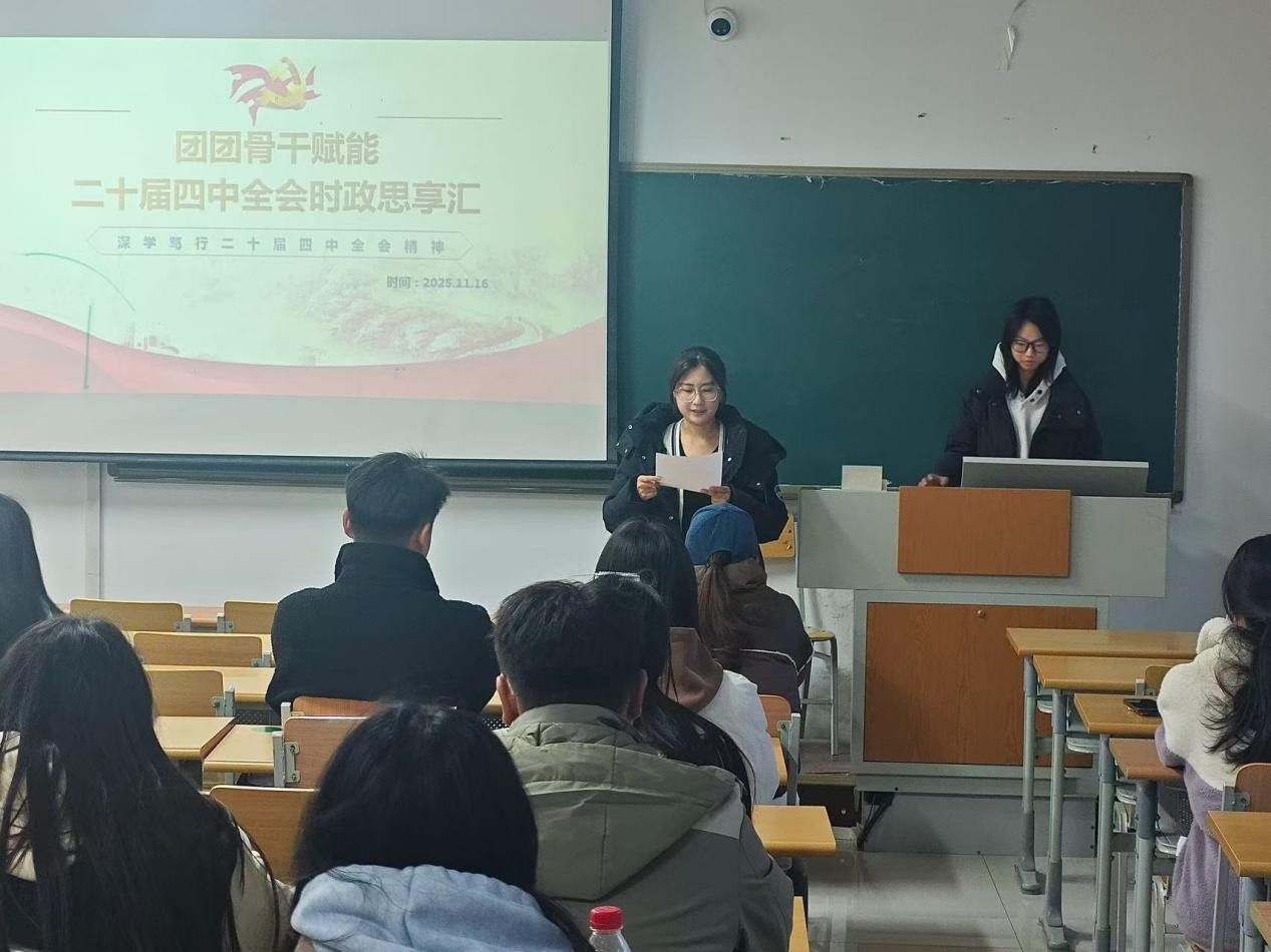 为深入学习贯彻党的二十届四中全会精神,加强团学骨干队伍政治锻造与思想引领。商学院11月16日于明理楼0351举办“团团骨干赋能——党的二十届四中全会时政思享汇”主题活动。25级各班学生骨干齐聚一堂,在学思践悟中把握时代脉搏,在交流探讨中凝聚青春力量。