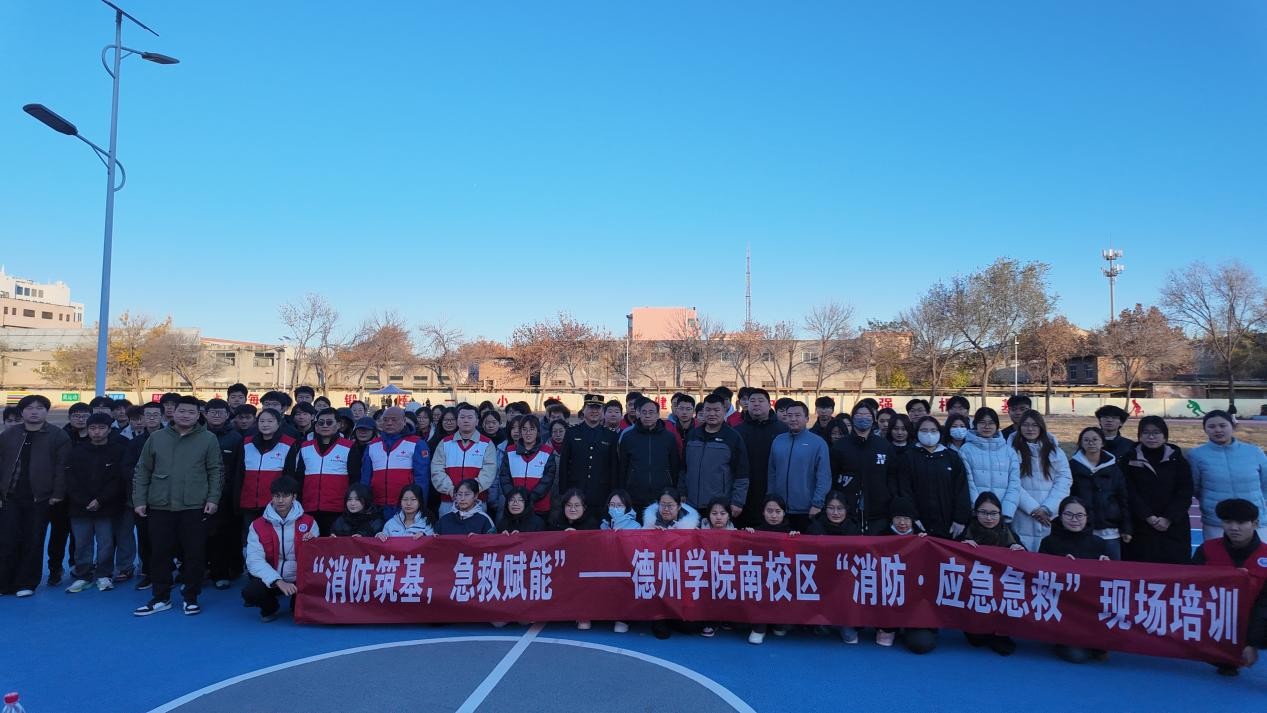 为深入贯彻落实习近平总书记关于应急管理的重要论述和消防工作重要指示批示精神,切实强化师生消防安全意识,提升应急处置与自救互救能力,2025年11月18日,于德州学院南校区举办消防演练、“知消防识,筑安全墙”知识竞赛、“消防・应急急救”现场培训等系列活动,本次活动由德州学院保卫处、学生工作部(处、武装部)、后勤处医务中心、德州市红十字会共同主办,德州学院商学院、能源与机械学院、生态与资源管理学院、健康医学院共同承办,共1200余名学生参加。