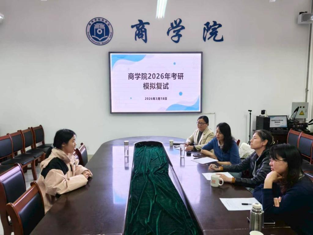 为帮助2026届考研学子提前熟悉复试流程、打磨应试技巧、缓解备考焦虑、提升临场应变与综合表达能力,3月18日,商学院在明理楼0359会议室组织开展2026年考研模拟复试专项指导活动。活动严格对标正式研究生复试标准,特邀4位经验丰富的专业教师担任评委。
