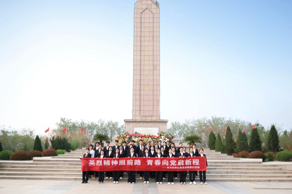 4月1日,商学院组织50余名师生党员及学生代表赴德州市革命烈士陵园,开展“英烈精神照前路·青春向党启新程”清明祭扫活动,以沉浸式红色教育厚植家国情怀,凝聚商科青年奋进力量。
