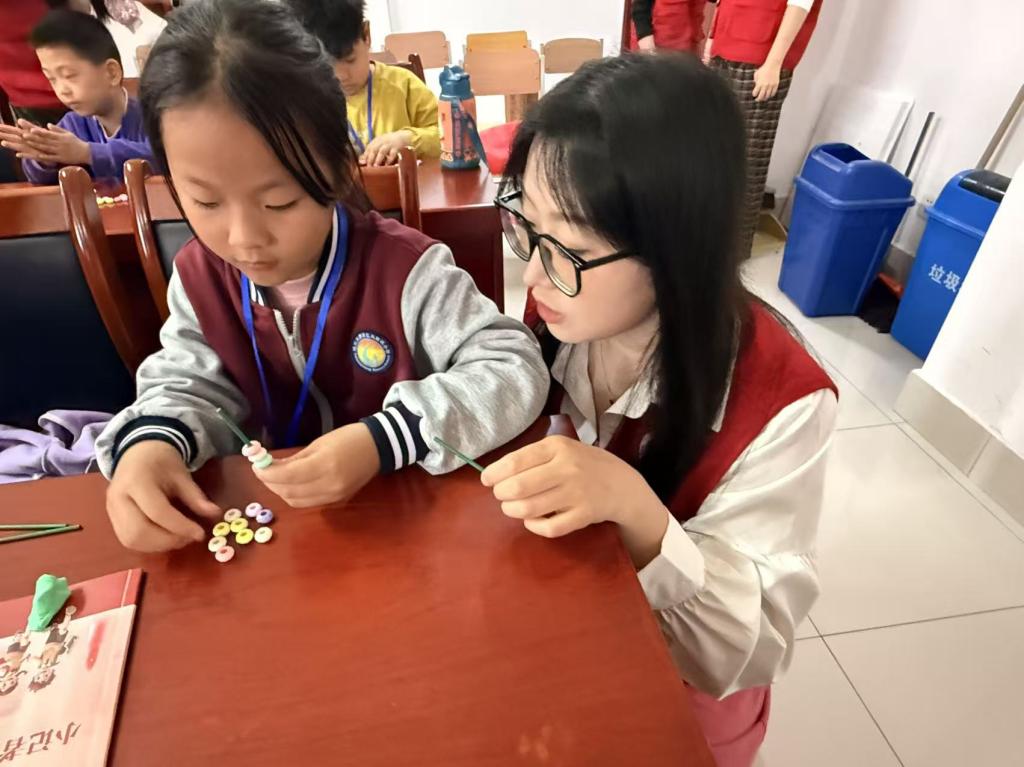 活动伊始,商学院志愿者带领小记者们参观校园文化地标,生动讲解学校的办学历史与校园文化底蕴,沉浸式感受浓厚的学术氛围与人文气息,在行走中播下求知向学的种子。随后,志愿者进行爱国主义主题演讲,通过鲜活的故事、直观的讲解,引导孩子们传承红色基因、厚植家国情怀。在财商启蒙环节,志愿者向小朋友们讲解人民币知识、防伪标识与算盘文化,带领孩子们体验拨珠计数、创意手工制作,在动手实践中理解勤俭节约、合理消费的意义。