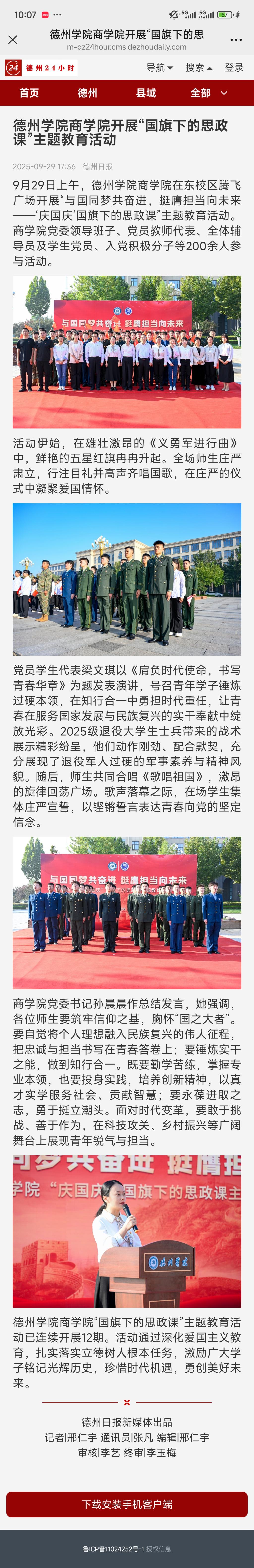 德州24小时:德州学院商学院开展“国旗下的思政课”主题教育活动