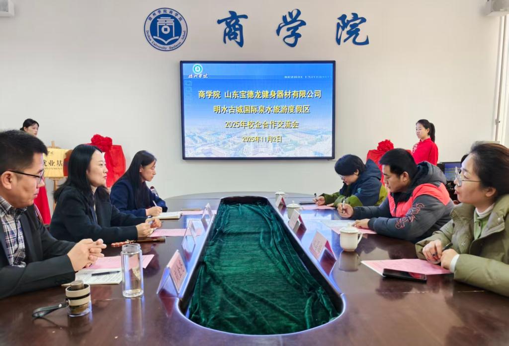 为深化产教融合,搭建校企协同育人平台,推动专业建设与行业发展精准对接,11月2日,商学院与山东宝德龙健身器材有限公司、明水古城国际泉水旅游度假区在明理楼0359会议室举行实习实训与就业基地签约仪式。山东宝德龙健身器材有限公司人事总监杨晓亮、人力资源经理刘昌梅,明水古城国际泉水旅游度假区人力资源经理翟建娟,商学院党委书记孙晨晨、院长杨颖等师生代表出席。