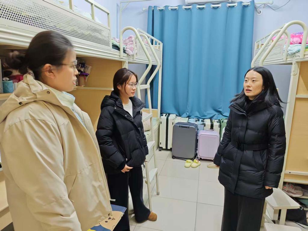 走访中,学院领导详细询问学生学习进度、日常生活及宿舍情况,倾听学生在学业提升、生活适应、人际交往等方面的问题与诉求,对相关意见建议逐一记录并回应。同时,叮嘱学生遵守校规校纪,合理安排作息,保持宿舍整洁有序,有困难及时与辅导员、学院沟通。同时勉励大家明确目标、合理规划学业与生活,多参与实践,不断提升综合素养,将个人理想融入时代发展需求,在服务社会、报效祖国中实现人生价值。